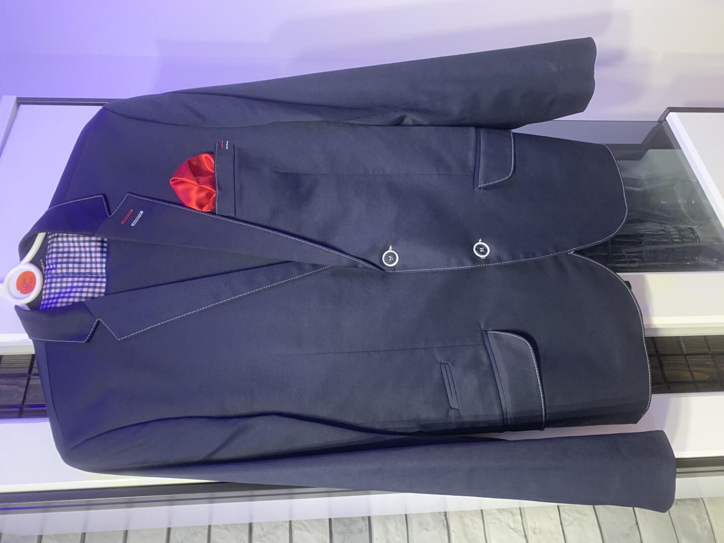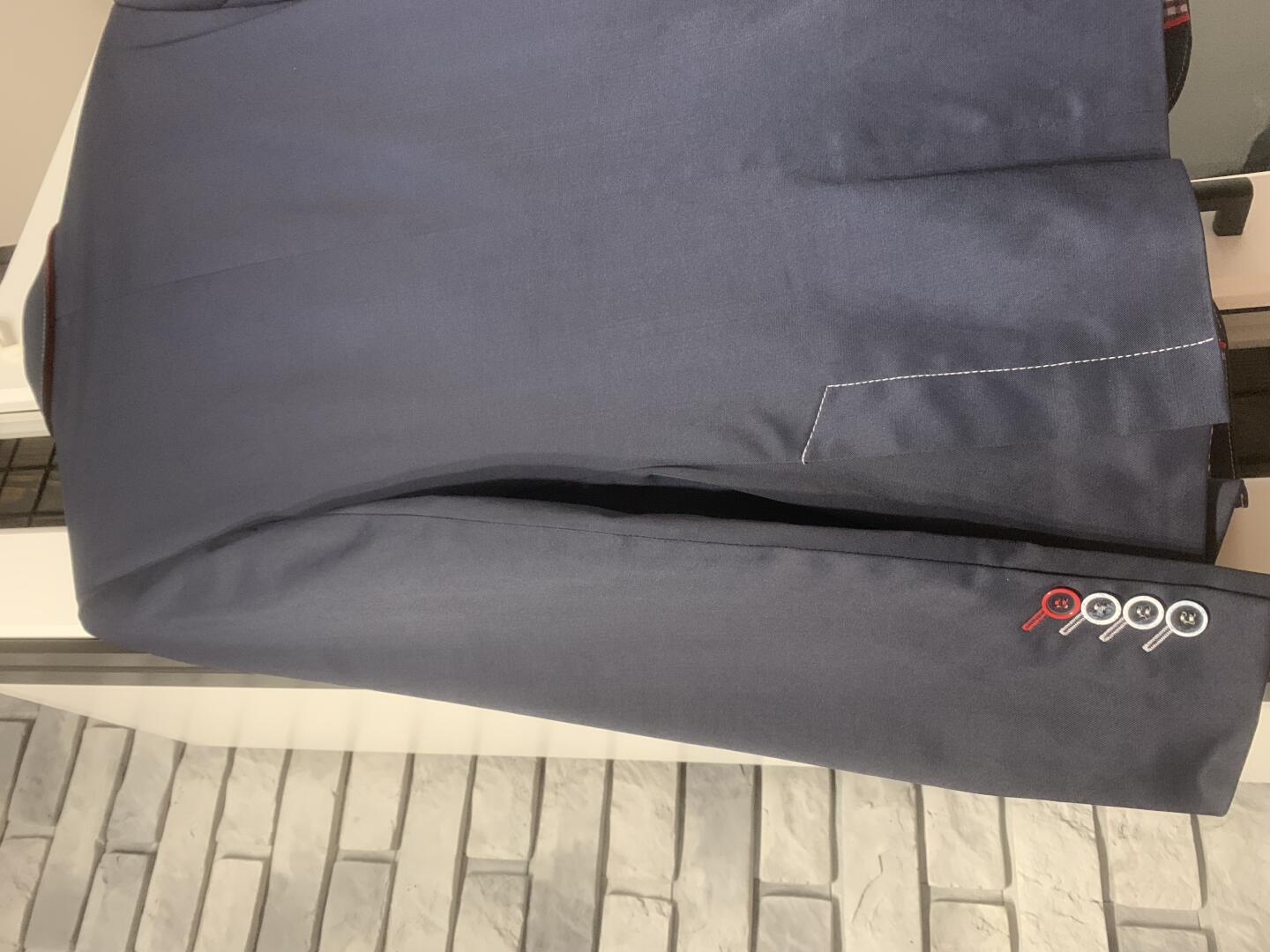 Witam.Sprzedam nowoczesny, młodziezowy garnitur typu slim,raz założony. Kolor granatowy z przeszyciem czerwono-białej nici, guzikami na mankietach i klapkami z tyłu marynarki.Rozmiar 182 /82.Więcej informacji udzielę telefonicznie.