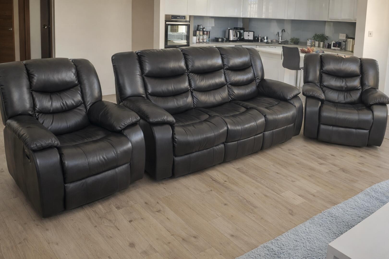 Cały zestaw wykonany ze skóry naturalnej produkcji włoskiej ! Stan mebli idealny.