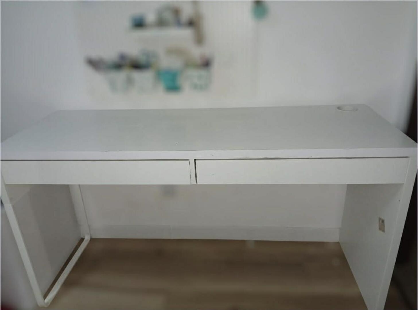 Sprzedam białe biurko IKEA MICKE o wymiarach 142 × 50 cm. Kupione około 2 lata temu. Duży, wygodny blat, dwie szuflady oraz przelotka na kable.