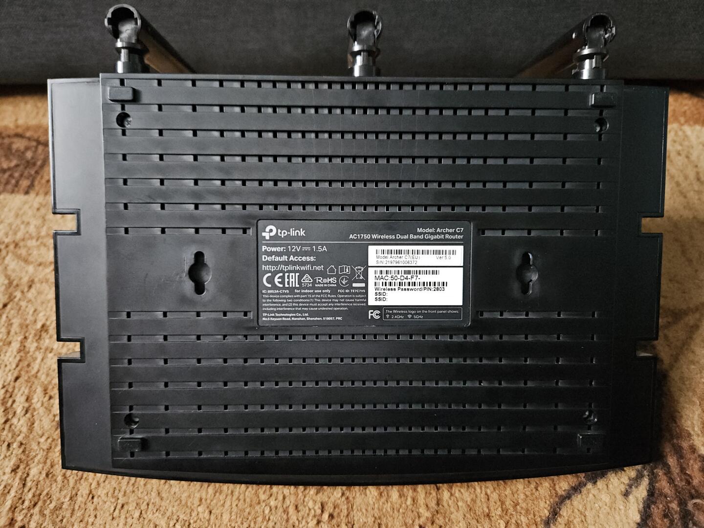 Na sprzedaż posiadam router Wi-Fi TP-Link Archer C7. Router jest sprawny. Działają wszystkie porty LAN i sieci bezprzewodowe w paśmie 2.4GHz oraz 5GHz. Stan wizualny oceniam na bardzo dobry. Na obudowie routera znajdują się niewielkie rysy. W zestawie zasilacz. Jeżeli znajdę oryginalne opakowanie to router zostanie sprzedany z oryginalnym opakowaniem. Router obsługuje standard Wi-Fi 5 802.11ac w paśmie 5GHz do 1300Mb/s oraz Wi-Fi 4 802.11n w paśmie 2.4GHz do 450Mb/s. Router posiada 1 port WAN oraz 4 porty LAN o przepustowości 1Gb/s. Ponadto router posiada port USB 2.0 do obsługi dysków twardych. Cena nie podlega negocjacji.
